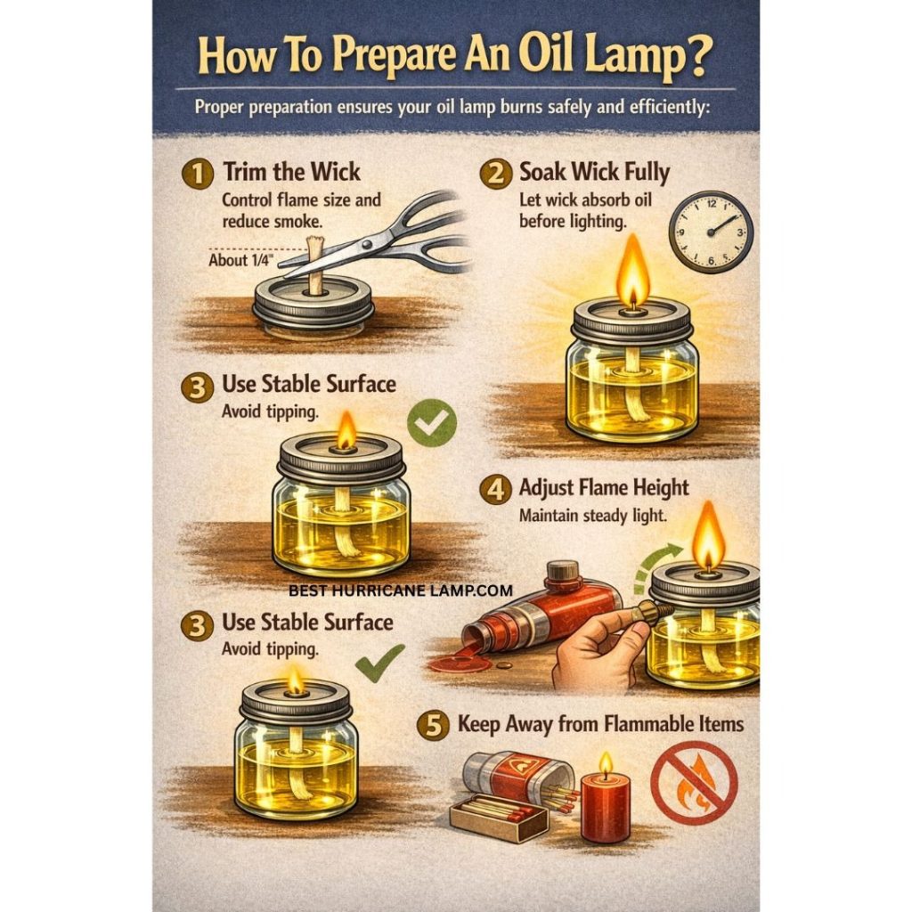 Proper preparation ensures your oil lamp burns safely and efficiently: